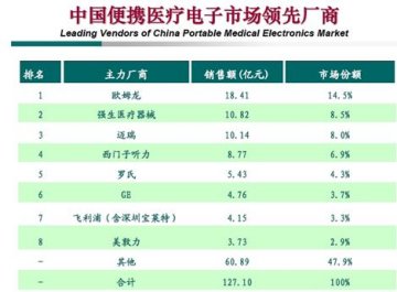 他指出由于上述三類產(chǎn)品超過90%的份額,也從另一個(gè)層面說明目前許多家用電子醫(yī)療產(chǎn)品在中國市場上還沒有開始普及。也說明中國家用便攜醫(yī)療電子市場的潛力非常之大。