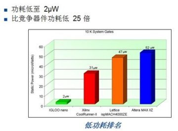 Actel技術(shù)支持培訓(xùn)經(jīng)理戴夢麟則介紹了低功耗Flash FPGA在便攜式醫(yī)療設(shè)備上的應(yīng)用,他指出Flash工藝具備低功耗優(yōu)勢、上電即行、單芯片帶來的總成本優(yōu)勢、天然的安全優(yōu)勢和可靠性優(yōu)勢等特點(diǎn),所以非常適合便攜式醫(yī)療電子產(chǎn)品應(yīng)用。他特別將IGLOO Nano 系列 FPGA的功耗和其他廠商的FPGA產(chǎn)品進(jìn)行了比較。
