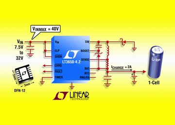 日前,凌力爾特公司 (Linear Technology Corporation) 推出面向單節(jié)鋰離子/聚合物電池的緊湊型、單片高壓電池充電器 LT3650-4.1 和 LT3650-4.2。這些器件的開關(guān)模式架構(gòu)最大限度地降低了功耗,不會浪費電路板空間。LT3650-4.1/4.2 在 4.75V 至 32V 的電壓范圍內(nèi)工作,具有 40V 絕對最大額定值,以增加系統(tǒng)裕度。用戶可選定時器或 C/10 終止無需外部微控制器,并簡化了設(shè)計。充電電流是可編程的,并可動態(tài)調(diào)整到高達 2A;電源電路集成到芯片上以節(jié)省電路板空間。LT3650-4.1/4.2 不需要外部高精確度電阻器來設(shè)置浮動電壓,從而進一步節(jié)省了成本和空間。應(yīng)用包括工業(yè)手持式儀表、12V 至 24V 汽車和重型設(shè)備、臺式插座充電器和小型筆記本電腦或平板電腦。LT3650-4.1 提供 4.1V 電池浮動電壓,允許高溫安全容限,而 LT3650-4.2 具有 4.2V 最終充電電壓,以實現(xiàn)優(yōu)化的電池運行時間。