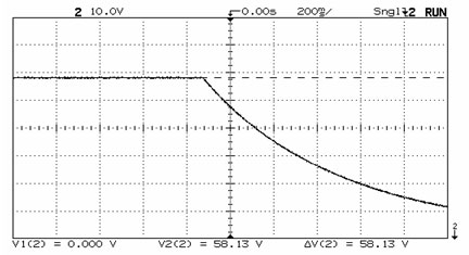 電網(wǎng)的突然變化時(shí)有發(fā)生,作為通訊電源,不僅要適應(yīng)電網(wǎng)的緩慢波動(dòng),還要適應(yīng)電網(wǎng)的突然變化,這種適應(yīng)不僅是電源不壞,更重要的是保證負(fù)載不受任何有害的沖擊。泰坦電源模塊在電網(wǎng)從 220V到330V的突變的情況下,可以安然無(wú)恙,會(huì)在幾個(gè)毫秒內(nèi)關(guān)機(jī)保護(hù),并保證其輸出電壓不會(huì)有任何過(guò)沖。到目前為止,尚未見(jiàn)到其它廠家能進(jìn)行這項(xiàng)實(shí)驗(yàn)。下圖是電網(wǎng)突變時(shí)電源模塊的空載輸出波形,可以看出,在輸入電壓這樣大幅度突變的情況下,輸出沒(méi)有任何過(guò)沖。
