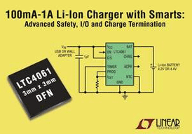凌特公司(Linear Technology)近日推出緊湊型獨立線性單節鋰離子電池充電器——LTC4061。該器件具有改善充電安全性、簡化充電終止和狀態報告并延長電池壽命等功能。