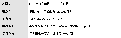 為了加強全球IC分銷行業的交流與合作,為IC分銷商搭建一個面對面溝通的平臺,促進分銷商有效利用電子商務拓展業務,同時也促進中國IC產業的良好發展,全球在線電子元器件交易平臺TBF(The Broker Forum)攜手其中國總代理英特翎科技有限公司,聯合中國電子元器件電子商務知名網站華強電子世界網(hqew)共同推出本次“首屆國際IC產業電子商務論壇暨TBF第四屆亞洲會員交流會”。
