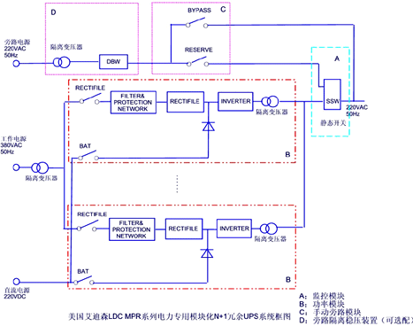 方案2:LDC MPR系列變電站專用模塊化N+1并聯冗余UPS/逆變器