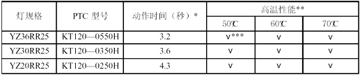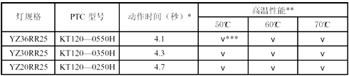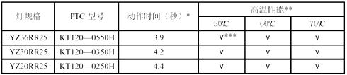 針對以上問題,上海科特高分子材料有限公司開發出KT120-H 系列電子鎮流器專用PTC 熱敏電阻,克服了上述缺陷,能很好解決鎮流器的異常狀態保護問題。