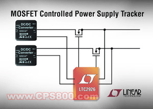 這款集成電路實現了各種上電和斷電模式,并可支持多達三個電源模塊:跟蹤一個“主控”信號的兩個“從屬”電源。多達兩個DC/DC模塊的跟蹤是用與電源路徑串聯的N溝道MOSFET來實現的,就基于集成電路的轉換器而言,是通過向反饋節點注入電流實現的,對轉換器的穩定性或瞬態響應沒有影響。除了MOSFET,每個通道的兩個外部電阻配置負載電壓,以連同電壓偏移、時延或不同的斜坡率一起跟蹤。多種加電和斷電模式滿足了FPGA、PLD、DSP和微處理器等數字邏輯電路的需求,從而使LTC2926非常適用于這類應用。