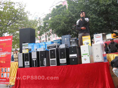 12月11號(hào),恰逢星期天。航嘉創(chuàng)威銷售有限公司和經(jīng)銷商一起組織了一場(chǎng)戶外的路演活動(dòng)。活動(dòng)吸引了眾多來電腦城購(gòu)物的朋友或者是路過的行人駐足觀看。路演節(jié)目豐富多彩,現(xiàn)場(chǎng)的觀眾也被演員們熱情的表演所感染,