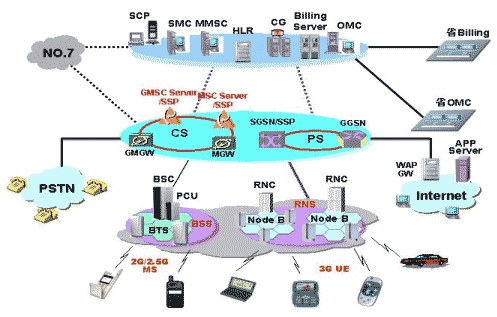 中興WCDMA系統(tǒng)(ZXW10)提供從核心網(wǎng)到無線網(wǎng)絡(luò)一系列產(chǎn)品,全系統(tǒng)由無線網(wǎng)絡(luò)子系統(tǒng)(ZXWR)和核心網(wǎng)網(wǎng)絡(luò)子系統(tǒng)(ZXWN)組成。核心網(wǎng)子系統(tǒng)包括ZXWN MSCS(MSCS是MSC Server的縮寫)、ZXWN MGW、ZXWN SGSN、ZXWN GGSN、ZXWN CG、ZXWN HLR,無線網(wǎng)絡(luò)子系統(tǒng)包括ZXWR RNC、ZXWR Node B。