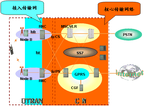 ◆接入傳輸網絡主要完成基站與基站控制器之間的業務的接入和傳送功能。由于NodeB通常很分散,由NodeB到RNC間的傳輸一般需要經過接入和匯聚兩層網絡。