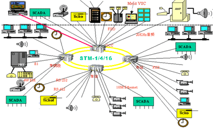 能夠迅速、準(zhǔn)確、可靠、透明地傳送各類電話、控制中心對(duì)車站的語(yǔ)言廣播、各種控制數(shù)據(jù)信息、監(jiān)控圖像信息,因而傳輸系統(tǒng)是一綜合業(yè)務(wù)平臺(tái)。