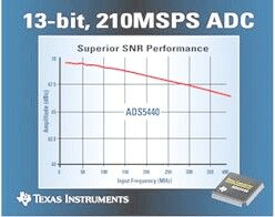 德州儀器(TI)公司推出具備優異動態性能的13位ADC——ADS5440。該器件最高取樣速率210MSPS和輸入頻率210MHz時,信噪比(SNR)達到68dB,無毛刺動態范圍(SFDR)為79dB。ADS5440的動態性能有助于改善諸如軟件定義無線電、基站功率放大器線性化系統,以及測試測量系統等應用的接收性能。