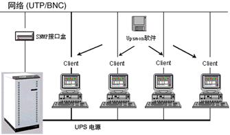 通過SNMP代理的遠(yuǎn)程網(wǎng)絡(luò)(WANS)監(jiān)控UPS。 SNMP就是簡易網(wǎng)絡(luò)管理協(xié)議的英文縮寫。其意義就是讓計(jì)算機(jī)及外圍設(shè)備能夠不透過計(jì)算機(jī)而直接接上網(wǎng)絡(luò),并讓網(wǎng)絡(luò)系統(tǒng)加以管理。UPS通常具有可選購的SNMP網(wǎng)絡(luò)管理接口,容易讓UPS連上網(wǎng)絡(luò)。