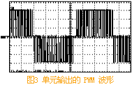 每個(gè)功率單元結(jié)構(gòu)以及電氣性能完全一致,可以互換,其電路結(jié)構(gòu)見圖2,為基本的交-直-交單相逆變電路,整流側(cè)為二極管三相全橋,通過對(duì)IGBT逆變橋進(jìn)行正弦PWM控制,可得到如圖3所示的波形。