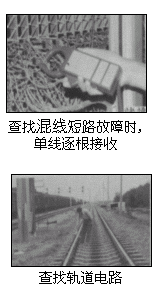 信號發送器輸出可施加于軌道電路設備二次電源兩端.人為故障電流一定而且必須經過短路點.用信號接收器按圖對單根配線進行接收,對每根有電平指示的配線,根據軌道電路設備圖確認屬于電源正或負的線點,這樣,正負電源線點的交分處即為軌道電路設備短路故障點.