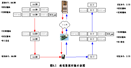 圖6.1描述了數(shù)據(jù)從數(shù)據(jù)采集平臺到智能設(shè)備編解碼過程。整個協(xié)議共經(jīng)過GOLD編碼和TCP/IP編碼兩次協(xié)議轉(zhuǎn)換。其中GOLD編碼是為了對設(shè)備運行狀態(tài)信息采集儀進行遠端配置而加入的,這樣我們可以根據(jù)用戶的需求方便的在數(shù)據(jù)中心進行在線配置。