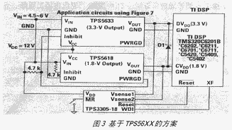 TIDSP家族(C6000和C54xx)要求有獨立的內核電源和I/0電源。雖然TI的DSP不要求內核電源和I/O電源之間有特殊的上電順序,但是假如有一個電源低于正常的工作電壓,設計時要確保沒有任何一個電源在任何時間段處于上電狀態。如果違反此規則,將嚴重影響器件的長期可靠性。另外從系統級考慮,例如總線競爭,就要按順序上電。在這種情況下,內核電源的上電應當同步或提前于I/O緩沖器。