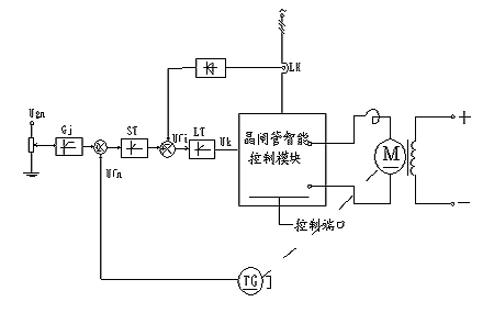 電路說(shuō)明: 直流拖動(dòng)系統(tǒng)由軟起動(dòng)部分,電流、轉(zhuǎn)速PI調(diào)節(jié)器部分,功率調(diào)節(jié)部分(晶閘管智能控制模塊),電動(dòng)機(jī)部分構(gòu)成。