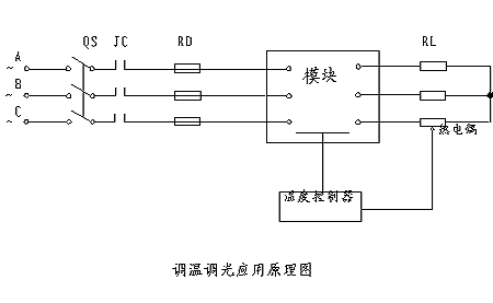 電路說(shuō)明:此裝置一般由晶閘管智能控制模塊、溫度控制器(儀表、PLC、微機(jī))及溫度檢測(cè)部分組成。