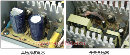 在高壓濾波方面這款產(chǎn)品選用了2顆220V330uF的規(guī)格的電容,這對于功耗在230W左右的網(wǎng)吧整機來說,完全夠用。開關(guān)變壓器是傳遞功率的部分,變壓器的直徑、高度和磁芯的材料都會影響到功率輸出大小。網(wǎng)吧精靈(ATX3500-L)選用了做工優(yōu)良的高規(guī)格元件。