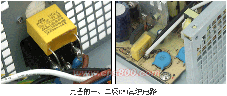 網(wǎng)吧精靈(ATX3500-L)設(shè)計了完備的一、二級EMI濾波電路。完備的EMI濾波電路可有效的濾除電網(wǎng)中的高頻雜波和同相干擾信號,能有效避免電源中產(chǎn)生的電磁輻射泄漏。沒有EMI電路的電源會泄漏大量的電磁輻射,不但會影響到顯示器和聲卡等設(shè)備的正常使用,而且還會對人身造成傷害。