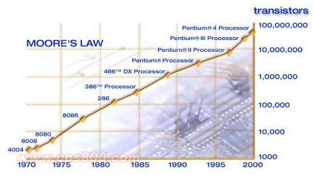 英特爾公司創(chuàng)始人戈登·摩爾曾在1965年提出“摩爾定律”(Moore's Law),成為指導(dǎo)全球信息產(chǎn)業(yè)發(fā)展的金科玉律。“摩爾定律”的內(nèi)容是:處理器(CPU)的功能和復(fù)雜性每年(其后期減慢為18個(gè)月)會(huì)增加一倍,而成本卻成比例地遞減。