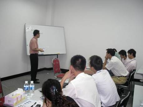 經(jīng)驗豐富的業(yè)務(wù)部經(jīng)理姚浪在為學(xué)員傳授銷售技巧