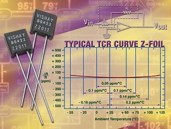 Vishay的創新型“Z”箔技術極大降低了電子組件對周圍環境變化(TCR)及應用功率變化(PCR)的敏感度。這種比其它任何電阻技術高一個數量級以上的突破性穩定水平可使設計人員確保在固定電阻應用中實現高精確度。