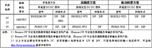 2、如果對(duì)于要求較低功耗的產(chǎn)品,可以選用MORNSUN公司功率較小的DC/DC電源模塊,如B0505LS-W5或B0505LS-W25等,可以避免空載功耗增大的同時(shí)又提高了電壓穩(wěn)定度;