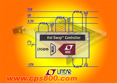 凌特公司推出的新型四電源熱插拔(Hot SwapTM)控制器LTC4245具有8位片上ADC和I2C兼容接口。LTC4245擁有支持3.3V、5V和±12VCompactPCI或12V、3.3V和輔助3.3VPCIExpress的靈活性,通過測量板卡電壓、電流和記錄故障狀態提供集成的數字電源監視功能。在這樣的高可用性系統中,仔細監視電源分配網絡是否處于正常狀態及其統一性是至關重要的。對于每個電源而言,ADC 寄存器中的信息均可以通過 I2C 總線來查詢,以確定板卡的工作狀態是否正常。LTC4245 對凌特公司的單通道LTC4215以及高壓正和負48V熱插拔控制器LTC4260和LTC4261起到了補充作用,這兩款高壓器件也具有片上ADC和I2C接口。