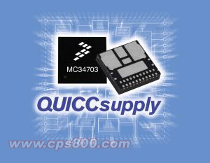 利用飛思卡爾專有的SMARTMOS程序制造的QUICCsupply IC包括一些關鍵功能,如電源排序、電壓極限、系統保護、可編程輸出、復位和看門狗(Watchdog)功能。MC34703雙輸出電源IC配備有10A的同步降壓轉換器,帶有集成的高電流low-Rds(on)和LDO控制器,可以與選擇的外部MOSFET協同運行。