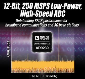 “AD9230是僅有的一款將功耗降低到500mW閾值以下的12bit 250MSPS ADC,因此降低了功耗,減小了系統(tǒng)尺寸,并使散熱管理的成本降到最低——對于當今高性能無線和有線應用是極其重要的屬性,” 高速信號處理器部產(chǎn)品線總監(jiān)Kevin Kattmann說,“AD9230用于微區(qū)和皮區(qū)基站傳輸路徑優(yōu)化了功率放大器的線性性能,同時由于減小終端系統(tǒng)的尺寸有利于加快系統(tǒng)配置。在電纜終端系統(tǒng)中,數(shù)據(jù)寬帶業(yè)務需求的增長在帶寬中占據(jù)越來越重要的位置,要求允許提高信道密集度的低功耗ADC!