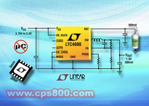 凌特公司(Linear Technology)日前推出具有獨(dú)立線性電池充電器和高效率同步降壓型轉(zhuǎn)換器的多功能集成電路LTC4080。該USB兼容的電池充電器能以高達(dá)500mA的電流為單節(jié)鋰離子電池充電,而且沒有使器件或周圍組件過熱的風(fēng)險。而300mA的降壓型穩(wěn)壓器具有可選工作模式和同步整流功能,以實(shí)現(xiàn)高達(dá)96%的效率。