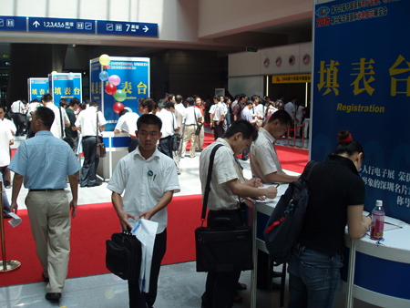 開幕第一天,雖然深圳下起了大雨,卻阻擋不了業內人士的熱情,紛紛前來參觀。一時間,展覽會服務臺、填表臺人群擁擠。
