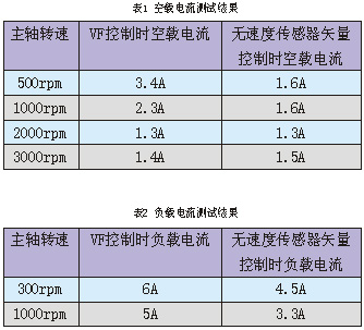 從表1和表2可以看出在恒轉矩輸出的頻率段(0-50Hz),矢量控制的空載電流幾乎只有VF控制的一半,負載時電流也比VF小一些;而且負載切削時,VF控制在初期有很明顯的速度下降,而且空載速度和負載速度有比較大的差值。而相對于矢量控制,主軸轉速初期雖然也會有下降,但是下降值較小,并且速度會很快回升,最終空載速度和負載速度相差不是很明顯。經過上面的調試,與VF控制比較,性能有了很大的改善,無論從空載電流,低速力矩,還是速度的變化,效果都是非常明顯的,完全能夠滿足數控機床的需求。投入運行后,使用效果令人滿意,說明臺達M系列變頻器在車床主軸控制系統中的應用是成功的。