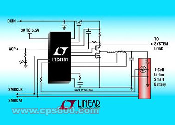 凌特公司日前推出快速、精確智能電池充電控制器LTC4101,該器件有無(wú)主微控制器都可工作。該IC完全符合Rev. 1.1 SMBus規(guī)范,并滿足了智能電池系統(tǒng)(SBS)二級(jí)(Level 2)充電功能的要求。LTC4101為3V至5.5V充電電壓而優(yōu)化,適用于單節(jié)鋰離子電池和3至4節(jié)鎳化學(xué)電池充電。它能夠以高達(dá)4A的電流快速充電,電壓準(zhǔn)確度為0.8%,電流準(zhǔn)確度為4%。同步開(kāi)關(guān)工作實(shí)現(xiàn)了在6V至28V的寬輸入電源電壓范圍內(nèi)的高效率充電。LTC4101采用小型24引腳SSOP封裝,非常適用于便攜式計(jì)算機(jī)和儀器。