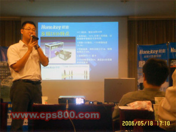 受臺風“珍珠”的影響,南昌也下起了小雨,天氣變得有些陰冷,但是航嘉產品交流會的會場里面卻是一片熱火的景象。會議正式開始前,航嘉工作人員給到場的嘉賓播放了2006年航嘉春節晚會上由電腦部件事業部員工編導并演出的音樂小品劇---“源”分。搞笑的服裝和滑稽的表演引得會議現場笑聲不斷……