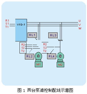 基于變頻調速的恒壓供水控制系統如圖1所示。在圖1控制系統中,壓力及流量是泵浦控制的兩個重要參數。VFD-F可借助壓力或流量傳感器回傳的電壓或電流信號持續跟蹤壓力及流量,泵浦按預先設定的運轉方式工作或停止,可大幅度節電并延長馬達及泵浦的使用壽命。控制多臺泵浦為了提高流量,可使用一臺以上泵浦組成控制系統,VFD-F可使用內建Relay(或選購Relay卡)控制額外泵浦在需要時的起動或停止,以維持恒壓。VFD-F變頻器參數的特別設置,可防止擾人的開開停停,提供泵浦之間平順的轉移及維持壓力在容許的誤差范圍。VFD-F可控制任何以馬達驅動的泵浦,內建最小速度設定點可符合深井泵馬達制造廠家的最低速度要求。由于VFD-F變頻器可使用V/F曲線,設定提供低速能達到100%的額定轉矩,提供正排量泵浦低轉速時所需的轉矩,使用者不必加大變頻器與馬達容量,使用Line-shaft透平泵浦時可消除危險轉速。