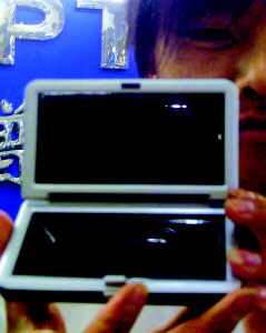 7月31日,銀川時代電腦城的一位銷售人員展示一款太陽能移動電源。