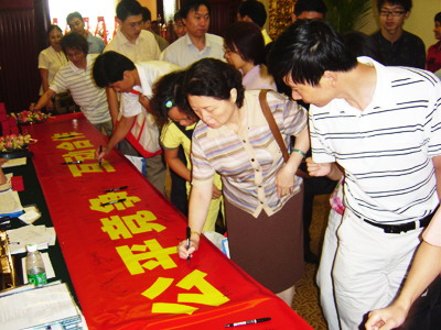 上午,廣東省電源行業協會第一屆會員大會結束后,《電源世界》組織了全體簽名活動,旨在倡導企業“誠信經營、公平競爭、互動合作”。參加會議的全體人士都積極踴躍的參與了本次簽名活動。