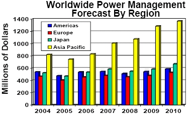 按區域劃分,現在全球絕大部分的加工生產是在亞太區,所以它對電源的需求會更多,到2010年大概達到14億美元(見圖2)。