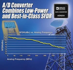 美國模擬器件公司(Analog Device,簡稱ADI)日前推出AD9254 150MSPS(每秒百萬次采樣)轉換速率14bit分辨率的模數轉換器(ADC)擴展了其無線基礎設施應用的器件種類。這款ADC工作在70MHz時具有83dB的無雜散動態范圍(SFDR),同時功耗僅為430mW——功耗比同類解決方案降低了50%。這種高SFDR、低功耗和小封裝尺寸(7mm×7mm的48引腳LFCSP)的組合使該器件適合多種無線基礎設施應用,包括WiMAX和皮蜂區基站接收機以及超聲波和手持儀器設備。