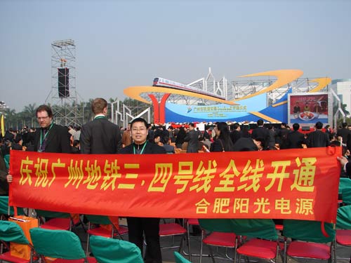 合肥陽光的應急電源產品在三號線四號線肩負重任,這是繼廣州新白云機場消防應急工程項目后又一重大工程.公司受邀于當日參加了開通儀式。