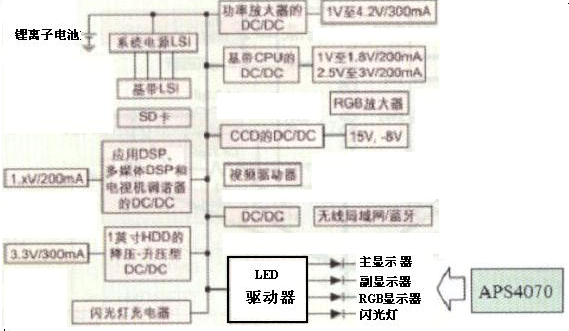 1.2應用領域:可在手機和智能電話、各種手持設備、各種白光LED背光應用、數碼相機、數碼攝像機、掌上電腦及個人媒體播放中心設備上使用。圖0(b)為APS4070在智能手機上應用示意圖。
