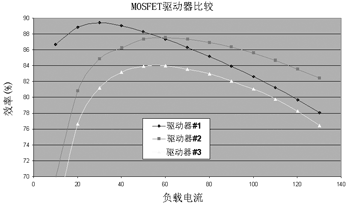 設(shè)計(jì)人員面臨的挑戰(zhàn)之一是驅(qū)動(dòng)器與MOSFET的正確匹配,從而在給定的成本范圍內(nèi)實(shí)現(xiàn)最大可能的性能。如圖3所示,對(duì)于個(gè)給定的MOSFET組合,選擇不同的驅(qū)動(dòng)器IC時(shí)效率曲線的形狀完全不同。這個(gè)問(wèn)題會(huì)轉(zhuǎn)化成工程設(shè)計(jì)時(shí)間,最終使電腦制造商節(jié)省更多成本。