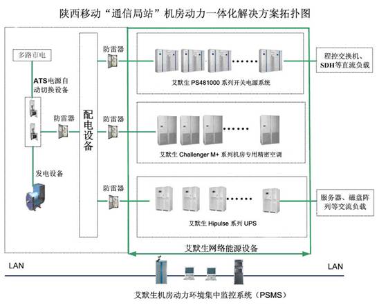 通過引進上述艾默生網絡能源設備,陜西移動為各“通信局站”機房打造了一體化的動力解決方案。該解決方案的工作原理如下: