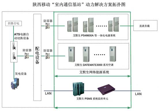 目前,陜西移動的GSM網絡擁有超過7000個移動通信基站,它們覆蓋了全省10個地市的80個縣區。其中,分布在縣級以上行政區域以及部分條件較好的鄉鎮區域內的移動通信基站,它們的通信設備都安裝在室內,由機房動力系統供電;分布在鄉村及野外(如公路沿線)的移動通信基站,它們的通信設備都安裝在室外,由戶外電源供電。針對上述兩類不同的通信基站,陜西移動也引進了不同的艾默生動力解決方案。