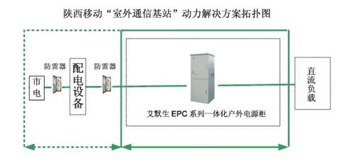 在過去,陜西移動的室外通信基站采用的是邊際網UPS供電的方式。由于運行環境惡劣(位于偏遠地區、山頭等)、農用電網質量低下(頻繁斷電、電壓不穩等),這些UPS設備的故障率和損壞率都居高不下,電池的壽命也都較為短暫,從而為陜西移動帶來了較大的綜合維護成本。為了有效解決上述問題,陜西移動專門引進了艾默生的EPC系列一體化戶外電源柜,取代了傳統的邊際網UPS供電方式。