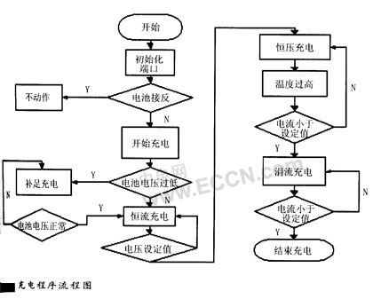 上電后,單片機(jī)首先檢查電池是否接反,電池電壓是否因為電而過低,如果電壓過低,先使用小電流給電池充電一間,使電壓達(dá)到三階段充電常水平在開始充電,如果電常則直接進(jìn)入正常充電階首先是恒流充電階段,充電小于0.5 C,一般取0.1 C,電壓會緩慢的上升,當(dāng)電壓到一定階段(本例中采用電60V)改為恒壓充電,此時隨電過程的進(jìn)行電池內(nèi)阻會逐升,充電電流會隨著內(nèi)阻的而減小,當(dāng)單片機(jī)檢測電流減小到一定的值(小于恒流充電值的1/1 0),立即轉(zhuǎn)入涓流充電階段,充電電流一般取0.3C,在此階段電池電壓會減小,當(dāng)充電電流小于0.0 1 C時即可認(rèn)為電池已充滿,單片機(jī)會自動將電池從充電電路中切除。在恒壓階段如果單片機(jī)檢測到電池溫度高于45度則自動轉(zhuǎn)入第三階段,待溫度下降后再轉(zhuǎn)入第二階段。充滿后通過單片機(jī)關(guān)斷繼電器,停止充電.。