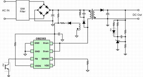 No Y-Cap方案包括常規PWM功率開關OB235X系列和一次側控制的PWM功率開關OB221X系列,涵蓋1W—20W功率范圍,適用于電源適配器,電池充電器,PC待機電源,LCD TV待機電源,也是RCC和線性電源的理想替代品。
