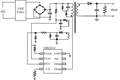 OB2212采用DIP8封裝,適用于功率范圍21W以下的應用領域。