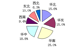 調查顯示,此次被調查的電源企業主要集中在華北、華東、華南和華中地區,四個地區電源企業占據整體調研樣本的74.4%。西北、西南和東北地區企業數量較少,所占比例較低,平均為8.5%。華東地區被調查企業所占比例為15.0%,和經濟發展程度稍有不符,主要原因為電源企業主要分布在華南、華中地區較多,對于華東主要以銷售和貿易為主。(見圖1)